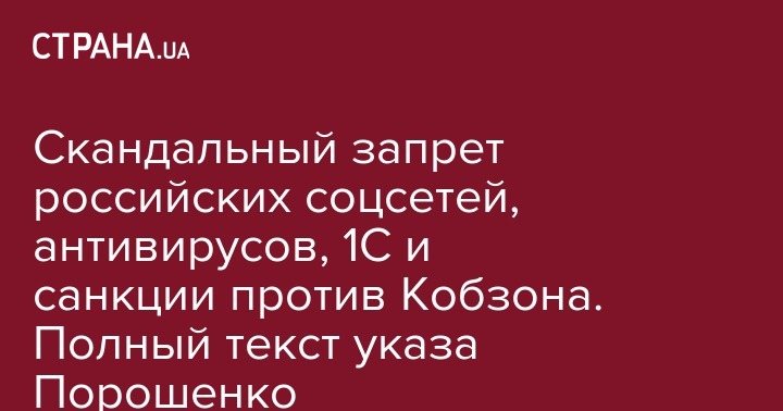 Скандальный запрет российских соцсетей, антивирусов, 1С и санкции против Кобзона. Полный текст указа Порошенко