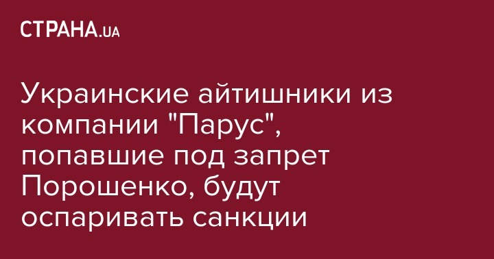 "В связи с указом Президента Украины № 133/2017 "О решении Совета национальной безопасности и обороны Украины от 28 апреля 2017 года "О применении персональных специальных экономических и других ограничительных мер (санкций)" сообщаем: "Парус" - это группа украинских компаний! Информацию об этом можно получить на сайте parus.ua в разделе "Авторские права и разрешения". Попадание в сакционный список группы компаний "Парус" не является правомерным, будет нами обжаловано и воспринимается нами как давление", - говорится в сообщении.