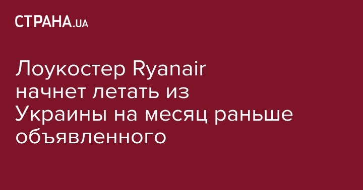 Лоукостер Ryanair начнет летать из Украины на месяц раньше объявленного