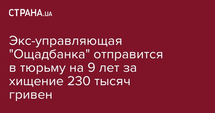 Бывшая управляющая одного из отделений "Ощадбанка", которая присвоила 229 тысяч гривен, приговорена к 9 годам лишения свободы. Об этом сообщает пресс-служба прокуратуры Киевской области.