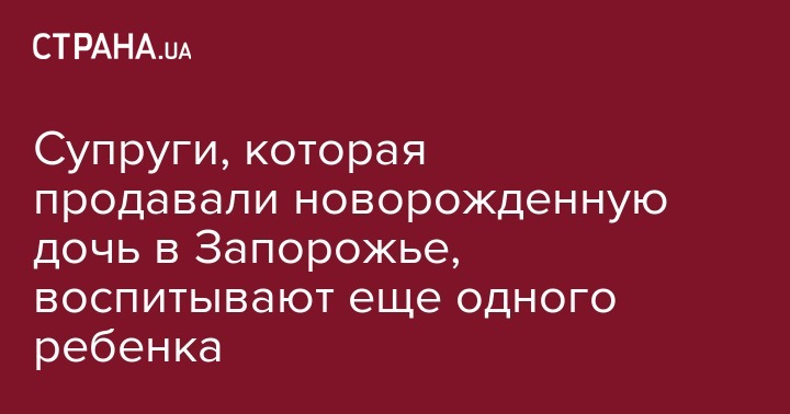 Ранее "Страна" сообщала, что в Запорожье молодожены пытались продать новорожденную дочь за $7 тыс. 24 летняя женщина и ее 23 летний летний муж были задержаны Запорожской полицией во время получение пачки долларов в обмен на продажу собственной дочери, появившейся на свет 11 мая.