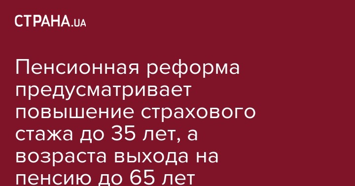 Пенсионная реформа предусматривает повышение страхового стажа до 35 лет, а возраста выхода на пенсию до 65 лет