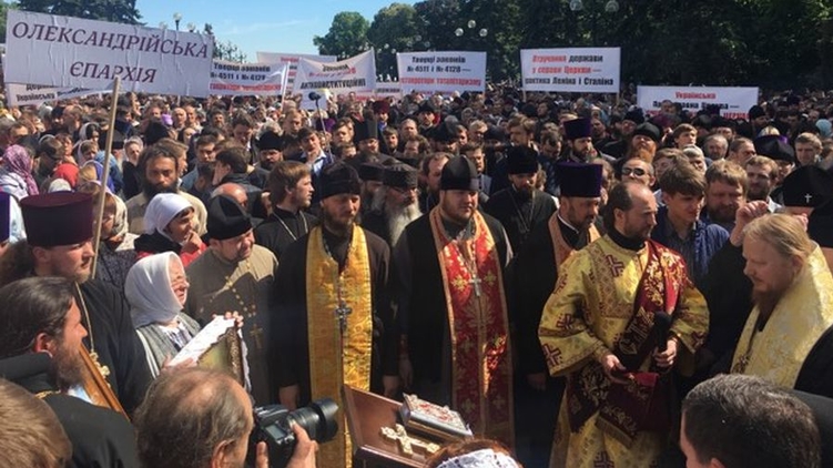 В ожидании голосования, утром 18 мая возле Верховной Рады прошел молебен против принятия "антицерковных" законопроектов. Вся площадь перед зданием парламента была заполнена верующими. А во время молебена в небе над Радой появился крест.
