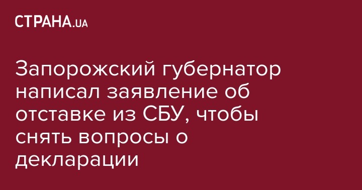 Запорожский губернатор написал заявление об отставке из СБУ, чтобы снять вопросы о декларации