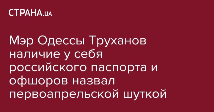 Мэр Одессы Геннадий Труханов прокомментировал слухи на тему его российского гражданства и офшоров в Панаме. Наличие у себя российского паспорта он назвал "первоапрельской шуткой, причем, довольно неудачной и потоком лжи", пишет "Сегодня".