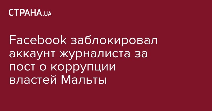 В удаленных записях содержались обвинения властей Мальты в коррупции. Facebook удалил записи репортера за нарушение внутренних правил социальной сети после ряда жалоб и заблокировал его страницу на 24 часа, передают "Украинские новости".
