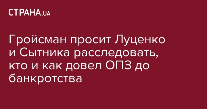 Гройсман просит Луценко и Сытника расследовать, кто и как довел ОПЗ до банкротства