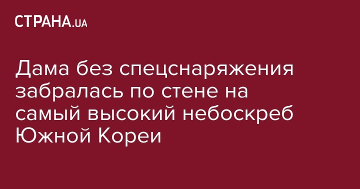 Дама без спецснаряжения забралась по стене на самый высокий небоскреб Южной Кореи