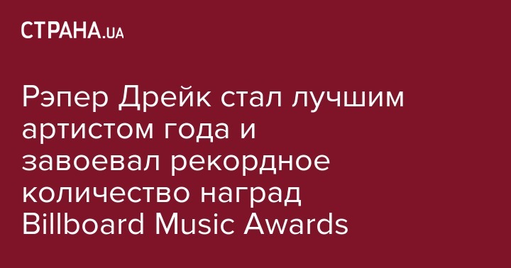 Канадский рэпер Drake получил главную награду премии Billboard Music Awards-2017 и был признан "Лучшим артистом года". В целом он завоевал 13 премий, говорится на сайте журнала.