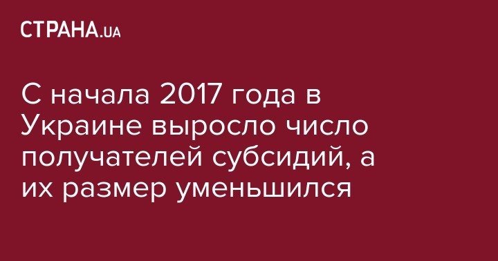С начала 2017 года в Украине выросло число получателей субсидий, а их размер уменьшился