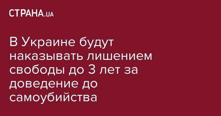 Согласно законопроекту, доведение лица до самоубийства или до попытки самоубийства наказывается ограничением свободы на срок до трех лет или лишением свободы на тот же срок.