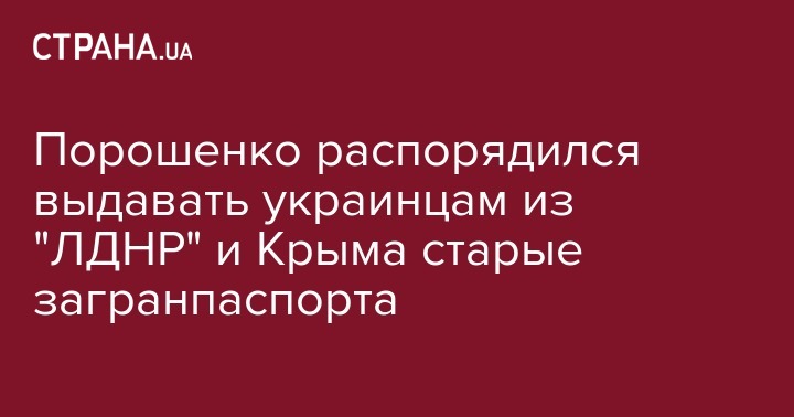 Президент Петр Порошенко поручил решить вопрос с обеспечением граждан Украины, находящихся на территории ОРДЛО и в оккупированном Крыму путем выдачи загранпаспортов старого образца.