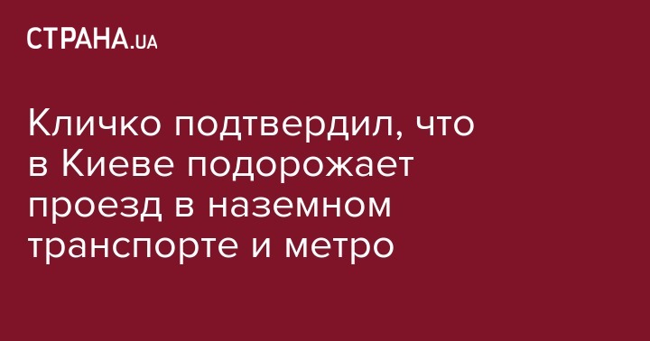 Мэр Киева Виталий Кличко подтвердил повышение стоимости проезда в наземном транспорте и метро на 1 гривну и указал на необходимость дотаций в 448,8 млн грн для КП "Киевпастранс". Об этом пишет сайт Киевской городской государственной администрации (КГГА).