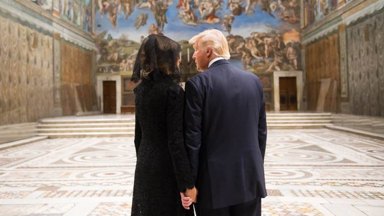 На некоторых снимках президентская чета запечатлена во время посещения Сикстинской капеллы, причем Дональд и Мелания держатся за руки. Ранее СМИ писали о том, что Мелания не берет мужа за руку во время официальных церемоний и визитов, а также выглядит подавленной.