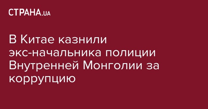 Сегодня утром, 26 мая в Китае казнили бывшего начальника полиции автономного района Внутренняя Монголия, который был признан виновным в совершении убийства и коррупции. Об этом сообщает Reuters.