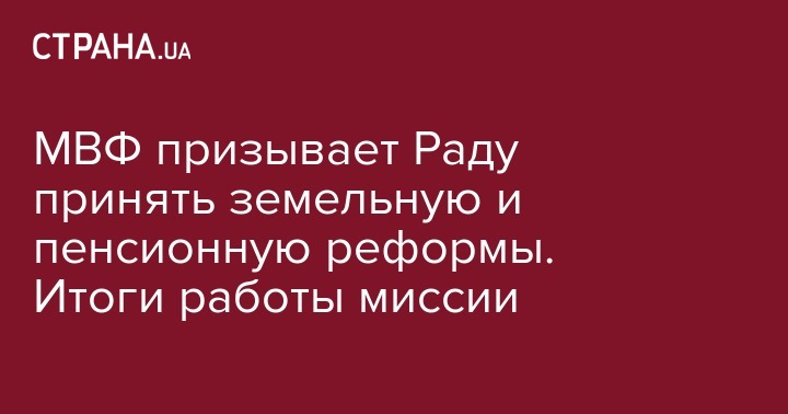 МВФ призывает Раду принять земельную и пенсионную реформы. Итоги работы миссии