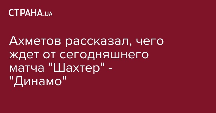 Президент донецкого "Шахтера" Ринат Ахметов поделился своими ожиданиями от сегодняшнего матча "горняков" с киевским "Динамо", передает пресс-служба донецкого клуба.