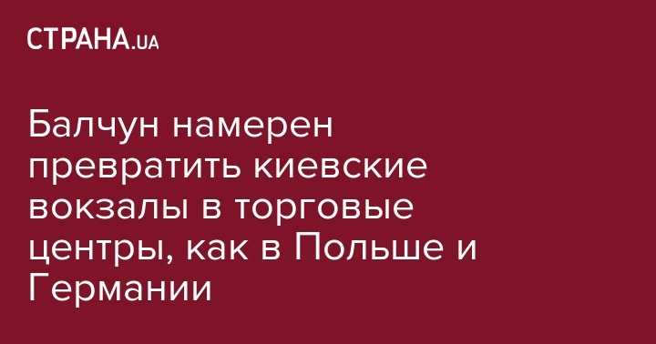 Балчун намерен превратить киевские вокзалы в торговые центры, как в Польше и Германии