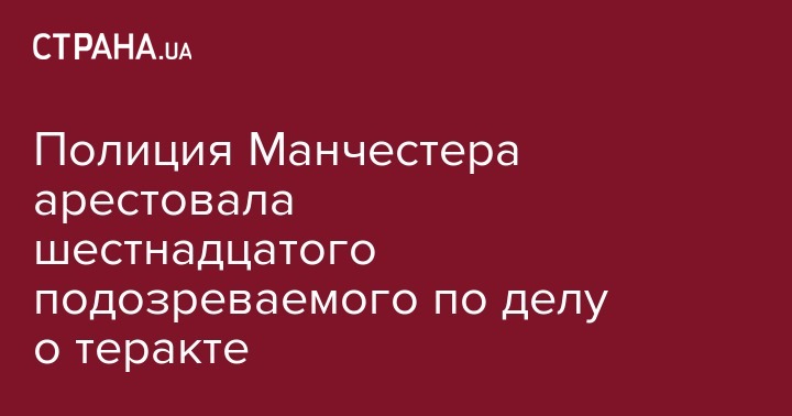 Полиция Манчестера арестовала шестнадцатого подозреваемого по делу о теракте