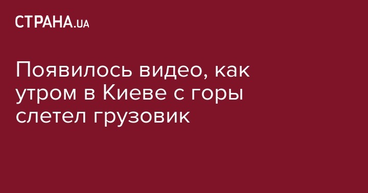 Появилось видео, как утром в Киеве с горы слетел грузовик