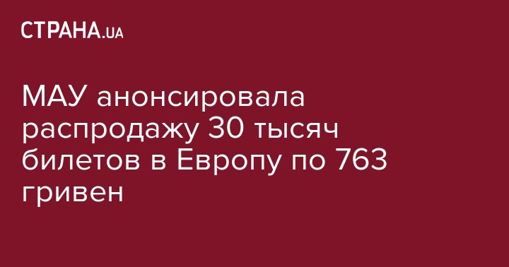 МАУ анонсировала распродажу 30 тысяч билетов в Европу по 763 гривен