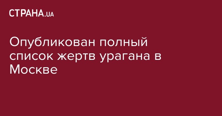 Опубликован список погибших во время урагана, который бушевал в столице сегодня несколько часов, пишет Лайф.