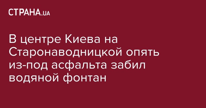 В центре Киева на Старонаводницкой опять из-под асфальта забил водяной фонтан