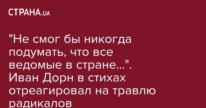 Украинский музыкант Иван Дорн прокомментировал новую волну нападок в Украине со стороны радикалов, из-за которых он отменил запланированный на июнь концерт в Одессе. Он ответил им стихом, опубликованном в Youtube.