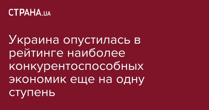 В 2017 году Украина заняла 60-е место в рейтинге наиболее конкурентоспособных экономик, тем самым опустившись на одну позицию по сравнению с 2016 годом. Об этом сообщает "Экономическая Правда".