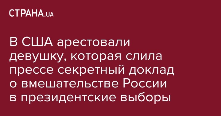 Спецслужбы США задержали и предъявили обвинение 25-летней работницы федерального учреждения, которая направила в американские СМИ секретный доклад о вмешательстве россиян в президентские выборы в Соединенных Штатах.