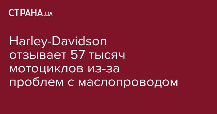 Знаменитая американская компания Harley-Davidson Inc. отзывает около 57 тыс. мотоциклов из продажи, после того, как стало известно об авариях, вызванных неполадками в маслопроводе. Об этом сообщает "Интерфакс".