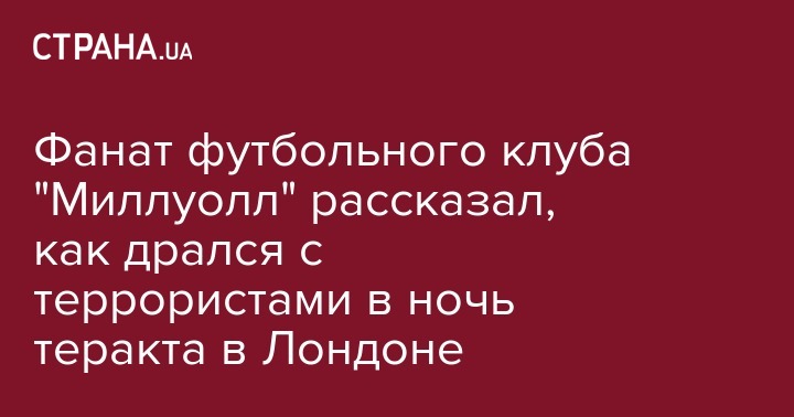 Фанат футбольного клуба "Миллуолл" рассказал, как дрался с террористами в ночь теракта в Лондоне