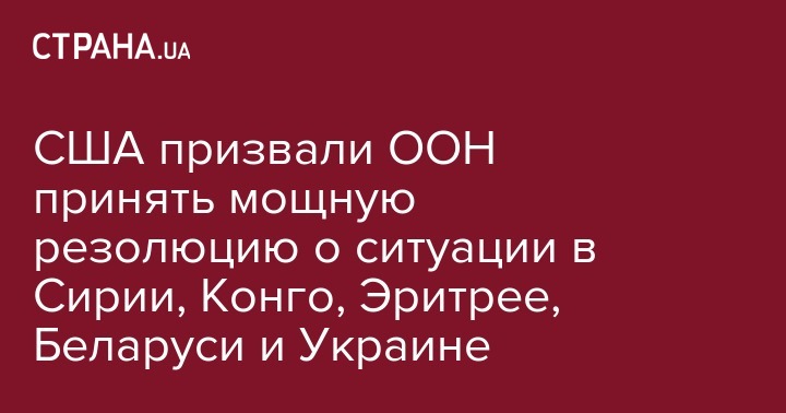 США призвали ООН принять мощную резолюцию о ситуации в Сирии, Конго, Эритрее, Беларуси и Украине