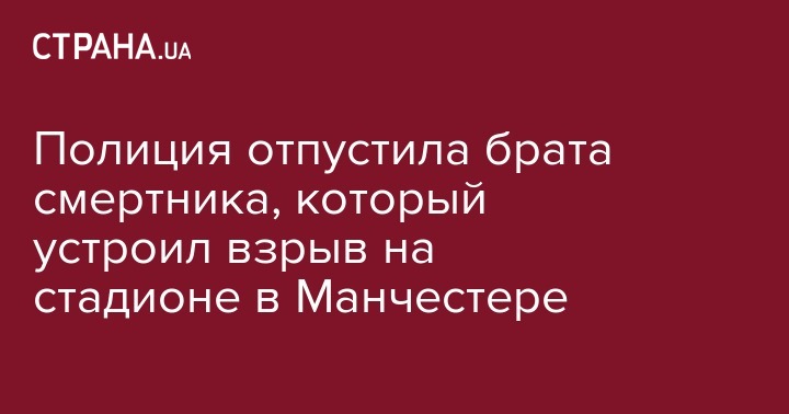 Полицейские не стали предъявлять обвинения Исмаилу Абеди, брату террориста-смертника, совершившего самоподрыв в Манчестере. Полиция отпустила 23-летнего Исмаила Абеди, который был арестован 23 мая, на следующий день после взрыва в Манчестере, в результате теракта погибли 22 человека, включая семерых подростков.