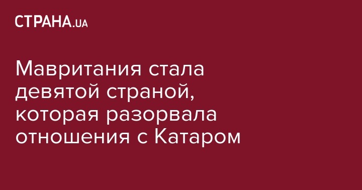 Исламская Республика Мавритания официально объявила о разрыве дипломатических отношений с Катаром, став девятой страной, которая приняла подобное решение. Об этом сообщает "Коммерсант".
