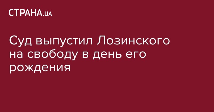 Об этом сообщает "Интерфакс-Украина". Коллегия судей Апелляционного суда Киевской области своим определением оставила без изменений решение Бориспольского горрайонного суда Киевской области об условно-досрочном освобождении Виктора Лозинского от отбывания наказания. Сегодня Лозинскому как раз исполнилось 52 года.