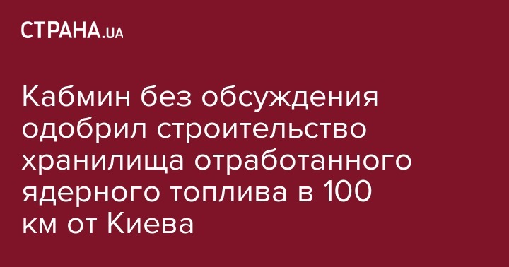 Кабмин без обсуждения одобрил строительство хранилища отработанного ядерного топлива в 100 км от Киева