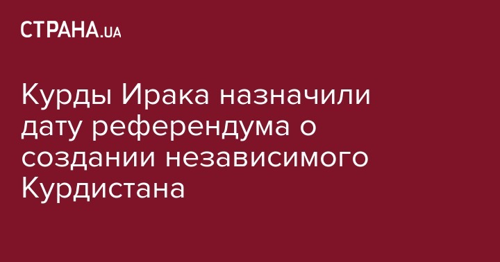 Власти курдского автономного региона Ирака назначили дату проведения референдума о создании независимого государства Курдистан. Голосование должно быть организовано 25 сентября 2017 года.