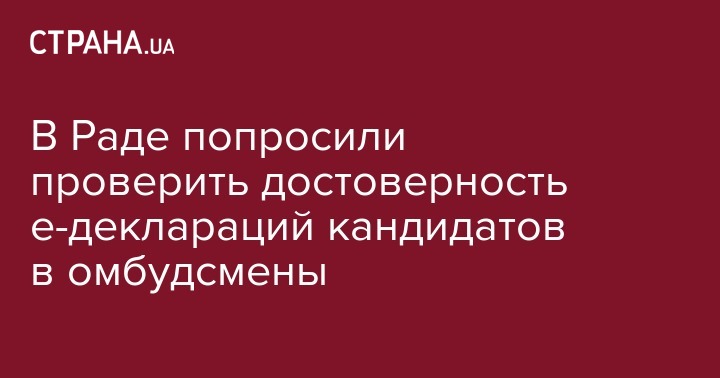 Аппарат Верховной Рады Украины попросил проверить достоверность информации в декларациях кандидатов на должность омбудсмена. Об этом пишет "Интерфакс-Украина".
