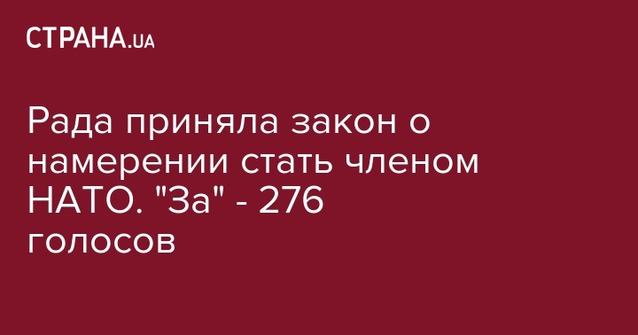 Рада приняла закон о намерении стать членом НАТО. "За" - 276 голосов