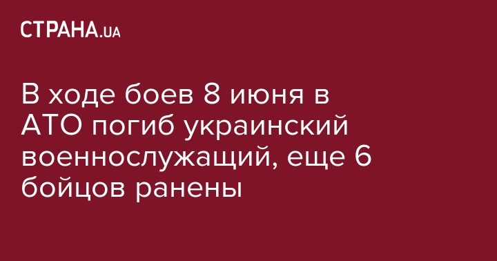 С начала суток 8 июня 2017 в зоне АТО зафиксировано 18 нарушений режима прекращения огня на Донбассе со стороны бандформирований. Они неоднократно применяли запрещенные Минскими соглашениями минометы калибра 120 мм. Жертвой боев стал один военнослужащий Вооруженных сил Украины. Еще шестеро бойцов ранены.