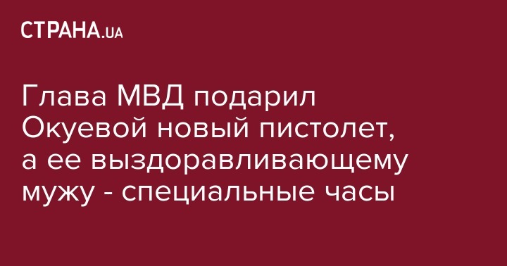 Министр внутренних дел Украины Арсен Аваков подарил участнице АТО Амине Окуевой наградной пистолет Glock-43, а ее раненному в результате покушения супругу Адаму Осмаеву – часы. Об этом написал Аваков на своей странице в Facebook.