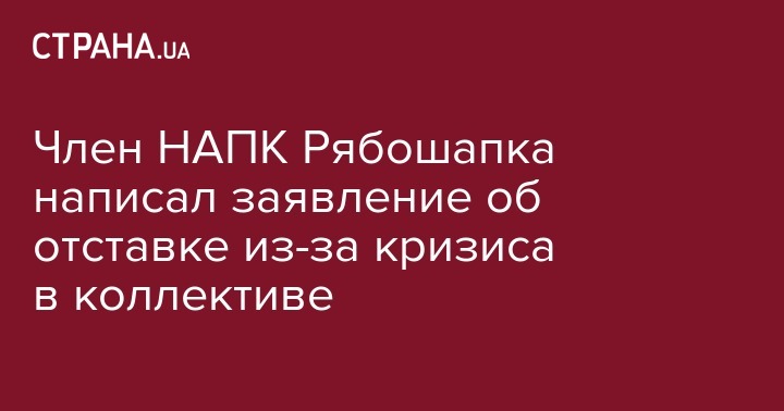 Член НАПК Рябошапка написал заявление об отставке из-за кризиса в коллективе
