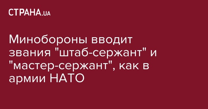 "В частности, планируется к рассмотрению в парламенте проект закона о внесении изменений в некоторые законы Украины относительно воинских званий военнослужащих". Он призван повысить роль сержантского и старшинского состава Вооруженных Сил Украины в обучении, воспитании, подготовке личного состава и выполнении задач по назначению в соответствии со стандартами НАТО. Документ предусматривает установление новых воинских званий сержантского и старшинского состава", - отметила Гаврилюк.