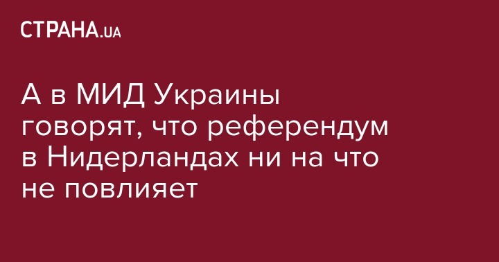 А в МИД Украины говорят, что референдум в Нидерландах ни на что не повлияет