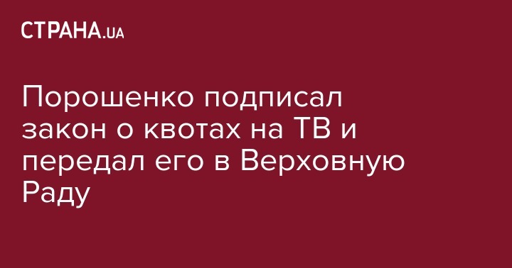 Порошенко подписал закон о квотах на ТВ и передал его в Верховную Раду
