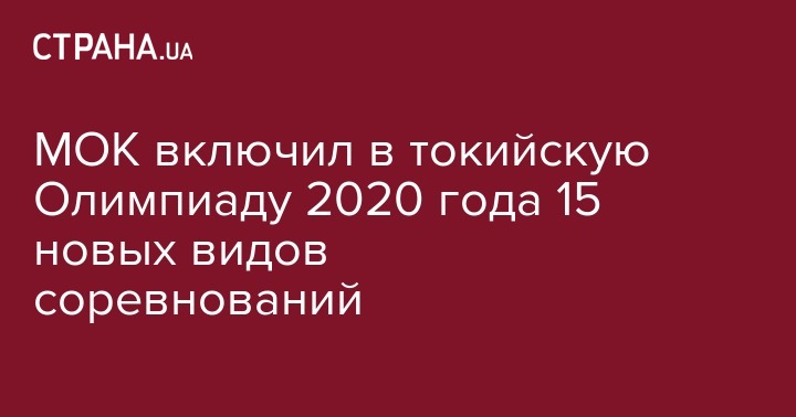 Международный олимпийский комитет (МОК) включил в программу летних Олимпийских игр 2020 года в Токио 15 новых дисциплин, ориентируясь на гендерное равенство и урбанизацию. Об этом сообщает официальный сайт МОК.