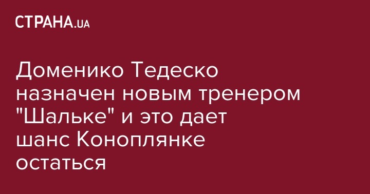 Доменико Тедеско назначен новым тренером "Шальке" и это дает шанс Коноплянке остаться