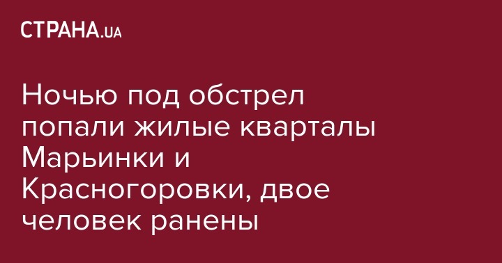 В ночь на 10 июня в районе Марьинки и Красногоровки в Донецкой области под огонь попали жилые кварталы, ранены двое местных жителя, есть разрушения. Об этом сообщила пресс-служба штаба АТО на своей странице в Facebook.