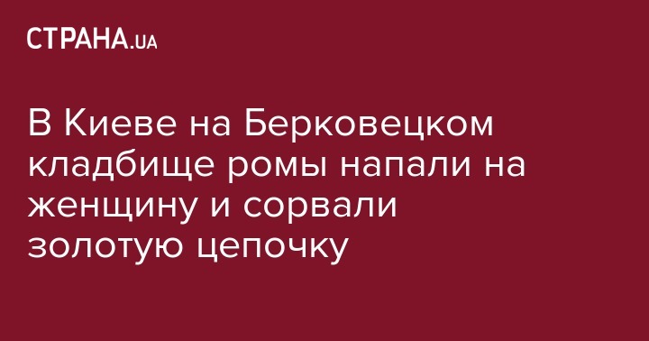 Сегодня, 10 июня, на Берковецком кладбище в Киеве произошло ограбление. Лица ромской внешности напали на пожилую женщину, украв у нее золотую цепочку, после чего скрылись. Об этом сообщает "Киев Оперативный".